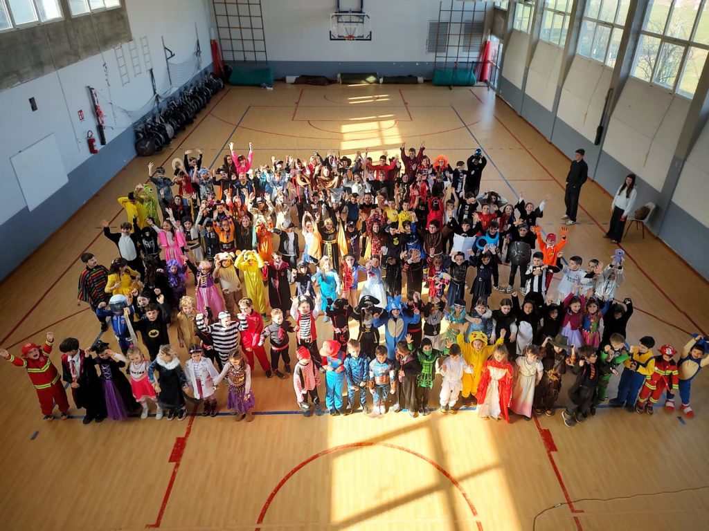 nostra palestra. Protagonisti e bambini della scuola primaria che, vestiti da carnevale, si sono esibiti in
